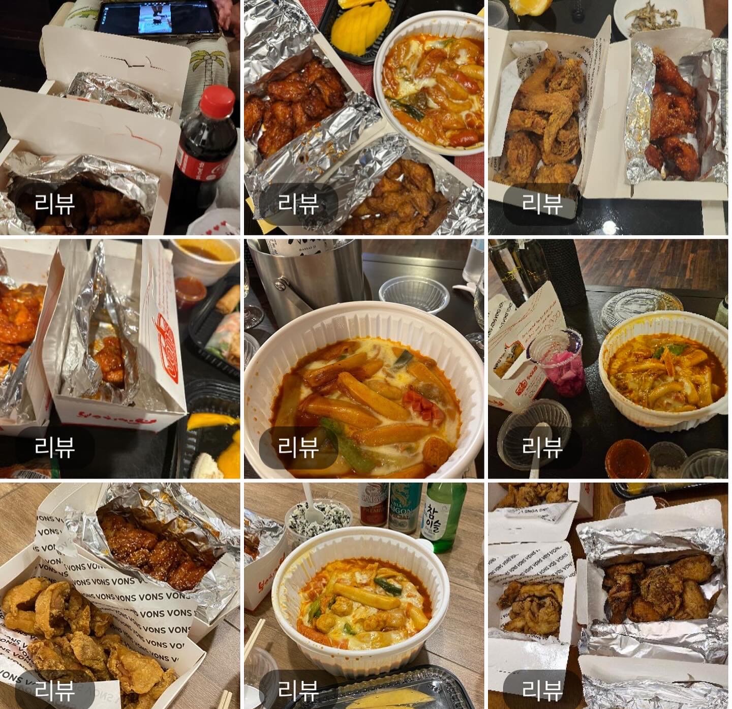 1. 후라이드 치킨, 양념 치킨, 하엘이네 떡볶이, 닭볶음탕